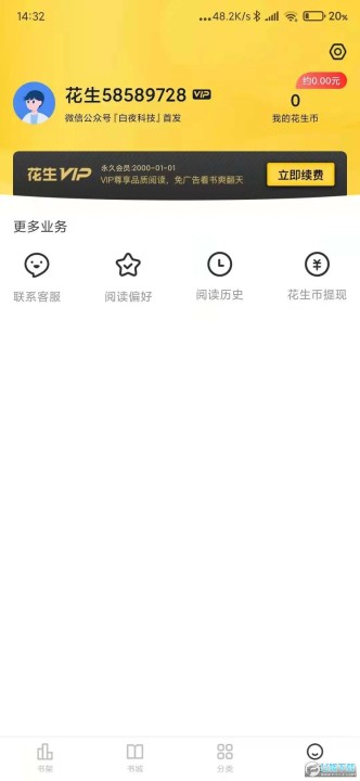 今天分享的这款花生小说已为大家解锁了永久会员,登录后就是永久会员了,已去除更新及所有广告。