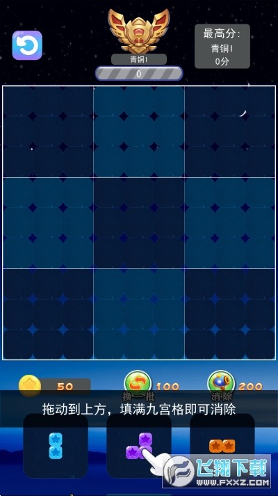 上次玩过一个类似的,不过消除规则是跟俄罗斯方块一样,感觉是比较难得高分。而这款采用九宫格消除规则的我感觉是要容易一点,不过还是得看运气,运气不好的话再怎么摆都是于事无补。