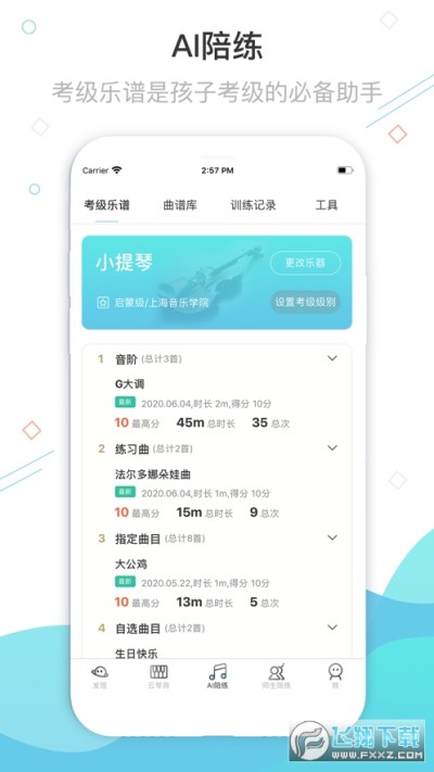 可自行选择对应乐器与等级,更全面帮助你练习。