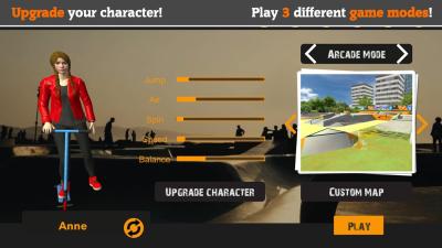 选择3种游戏模式中的一种,Arcade模式,你可以在3分钟内获得尽可能多的积分,SCOOT,你必须做特定技巧才能获胜,或者选择自由模式,你可以在没有时间限制或中断的情况下滑行而且玩得开心!