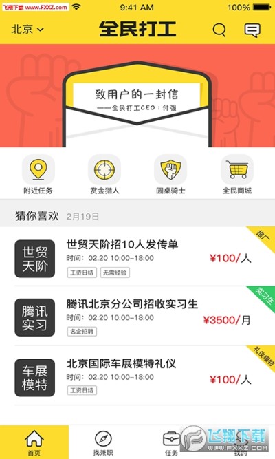全民打工是由全民掌网(北京)科技有限公司基于移动互联网、全方位整合衔接本地服务需求及闲置劳务资源的综合性移动在线服务平台。全民打工通过线上平台及线下运营的双向服务,不仅可以实现服务需求方与兼职服务提供方两者之间的有效对接,还利用“Uber+兼职”的模式,融合在线支付、LBS定位等技术,解决目前兼职劳务市场供求信息不够对称,推广渠道不够通畅、薪酬收支不够便捷、供求双方信任度不高等问题。同时,我们还将为服务供求双方建立切实有效的互动交流机制以及信用评价体系,从而实现服务供求双方利益最大化。