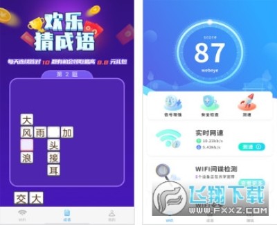闪电快连WiFi是一款让你快速连接WIFI的工具,可以对你连接的网络进行优化,让你的网络更加稳定,这里不仅可以享受快速连接WIFI,还能赚钱,玩猜成语的小游戏,猜对成语就能赚钱哦。