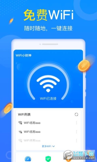 wifi小财神是一款连接安全免费wifi的上网工具,具有网络测速等功能,操作便捷,让您手机上网更快更高效。
