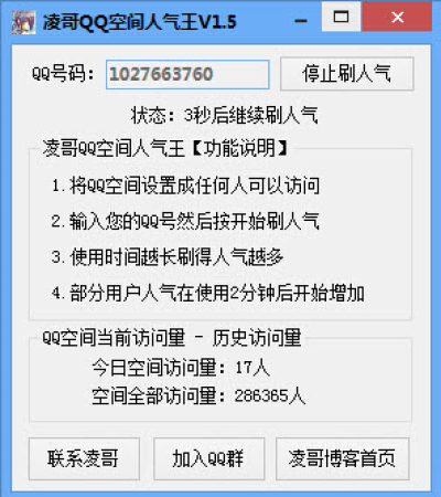 凌哥QQ空间人气王是一个非常不错的QQ空间辅助工具,可以帮助大家快速刷qq空间访问量,让自己的空间充满人气,喜欢玩QQ空间的朋友切不可错过哦!