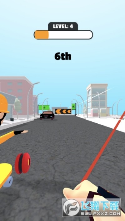 1、控制你的人物角色开始滑滑板,同时进行溜溜球的操作。