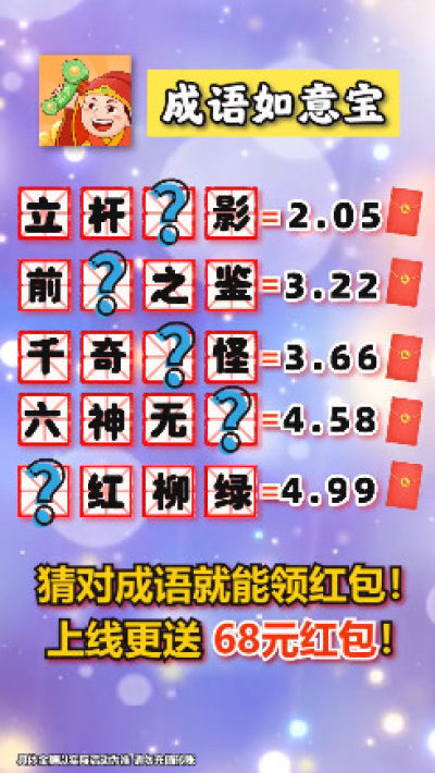 成语如意宝是成语闯关赚钱的游戏,游戏中拥有最丰富的答题闯关关卡,小伙伴们在无聊的时候就可以上线猜成语,只要我们成功猜出,就会有红包直接放到我们的钱包内,游戏不仅可以丰富我们的知识文化,还能获得福利。