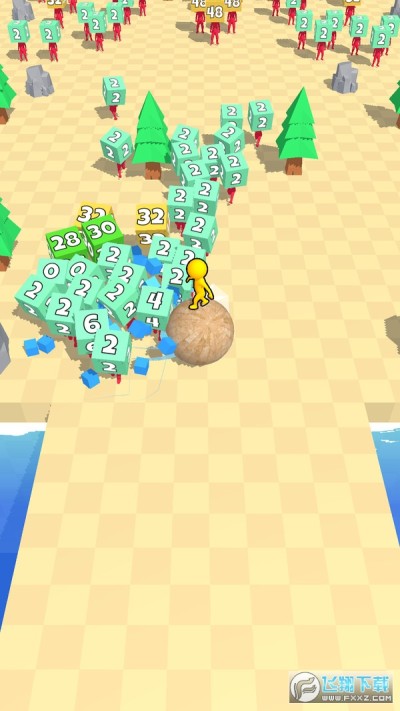 1、在这个地图中不断地移动,控制巨型球碾碎敌人,都有数字标识。