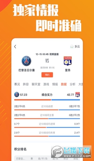 数据一览,掌控所有体育赛事的积分榜、数据。