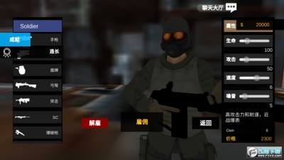 ·在武器界面,你可以购买各种枪支,还可以通过不断升级提升其属性
