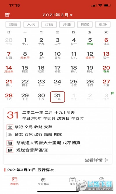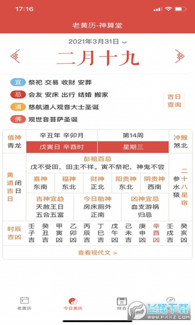 神算堂老黄历是一款掌上日历软件,上面会显示农历日历等,还有很多特殊的节日也会显示,用户可以根据自己的需求常看详细的日历信息,还可以仆算黄道吉日什么的很方便!