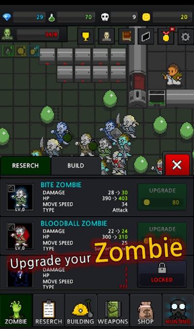 3、各种变异僵尸和研究所,让你培养你的僵尸军团!