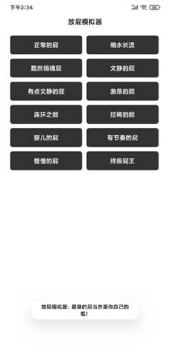 1、这是一款模拟放屁声音的软件,简单好玩,可以恶搞你的朋友;