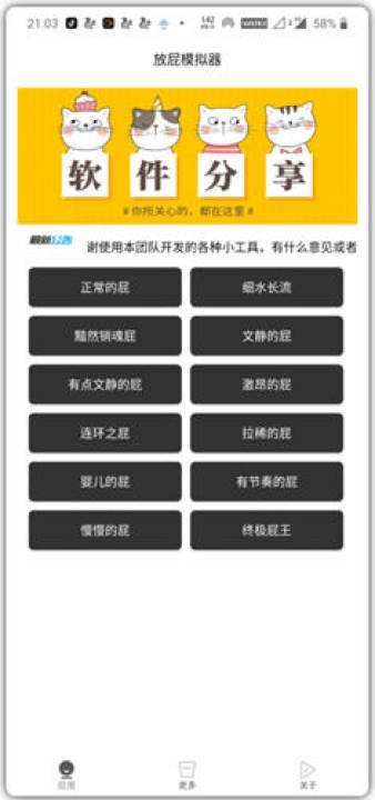 2、软件里面有十几种放屁的声音,是模拟了真实的人放屁的声音;