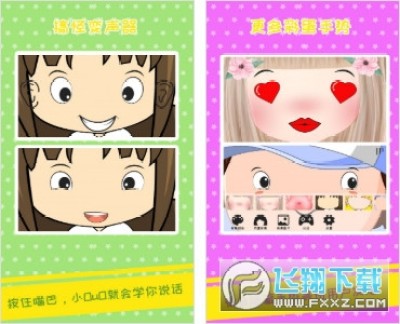 界面也很卡哇伊,支持各种脸部图片的更换,即使你们之间没有任何的互动,也会做出各种喜怒哀乐的表情,一旦你触摸了屏幕,移动了手机,它会和你互动。