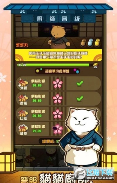 3.解锁并且强化你的猫咪厨师,成为猫界名厨,壮大深夜食堂,吸引更多的顾客吧!