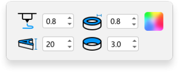 斜边字: 可设置围边倾斜角度、倾斜方向;随着围边尺寸变小,围边倾斜角度也需要对应变小,否则会导致打印失败。