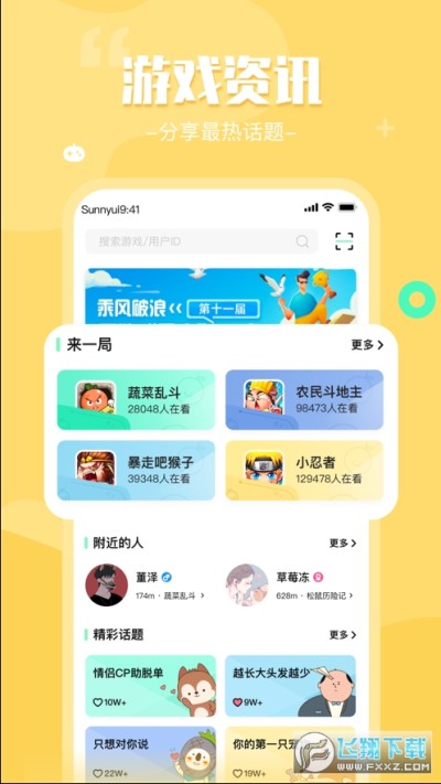 来一局app是一款游戏社交平台,这里通过各种各样的游戏来交朋友,跟其他的人一起玩,而且这里也有很多的游戏资讯可以了解查看,在来一局app上你可以跟你的游戏好友一起聊天讨论游戏的玩法,还能拉上好友一起玩小游戏哦!