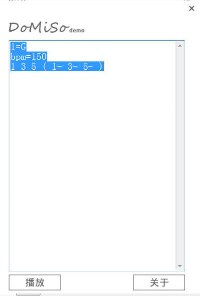 DoMiSo 是一个轻量级的简谱解释器,它能够将格式化的简谱转换成midi音乐并播放出来。 DoMiSo的简谱格式包含控制命令与音符标记。 其中控制命令包括调性控制,速度控制和回滚控制。