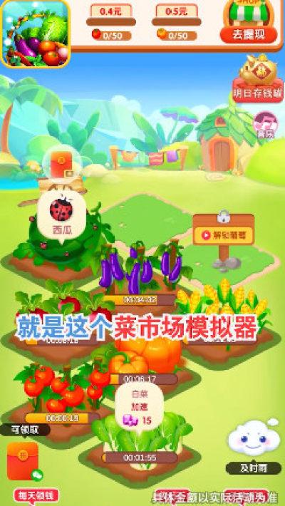 《菜市场模拟器红包版》是一款可以种菜赚钱的网赚游戏。这款种菜游戏加入了经营元素,玩家在游戏中可以通过农场经营来领取更多的红包奖励,这里的任务丰富,红包奖励丰厚!感兴趣的赶紧下载体验吧!