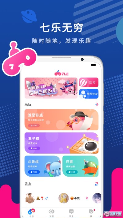 7乐,是一款可以随时随地体验各种[线上桌游]和[互动玩法],加入[语音互动]的社交APP。丰富的互动玩法让你边玩边聊,趣味互动,轻松交友,引领当下交友新方式。