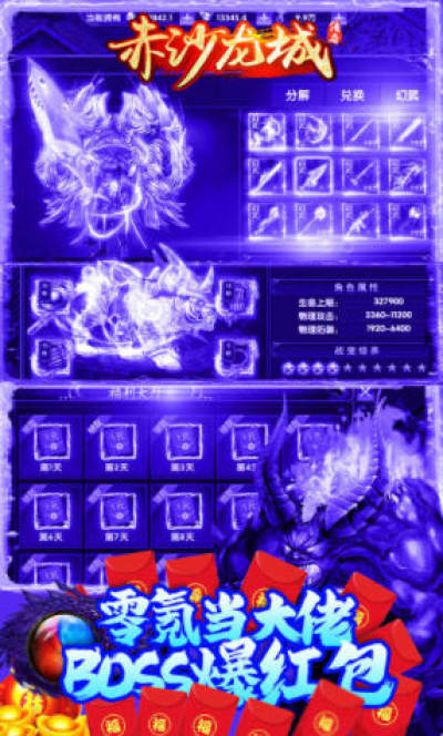 1、玩家们可以通过刷怪和打boss获取神级装备,不断强化自己的战斗属性。