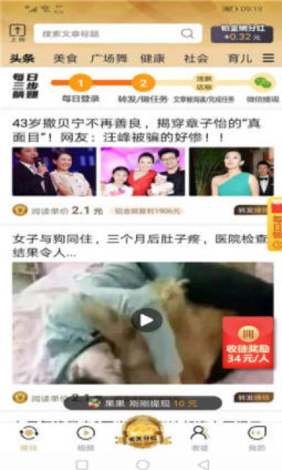 1、这是款拥有丰富短视频内容的阅读转发赚钱软件
