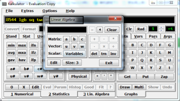 Kalkulator提供了许多物理学中常用的标准常量,你可以在精密的科学计算中直接引用值。可分别进行数字运算、线性代数运算及统计运算。