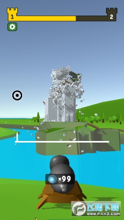 很棒的一款物理解压小游戏。小时候看怪兽摧毁建筑街道,或是炮火轰炸城市,其火光冲天碎片四溅的场景往往能激起心中的破坏欲,会有种特别舒畅的爽快感。而这款小游戏可以满足你内心的破坏欲,让你扮演一个大炮指挥,体验炸毁城堡的舒爽感觉。游戏物理效果很棒,也略微有点夸张,唯一不足的感觉没有落水效果,砖头掉到水里没一点动静。游戏是关卡制,将摧毁到一定程度后即表示过关,则会开启下个关卡。越往后炮弹越少建筑越大,需要合理运用空间想象和物理知识(#滑稽)来思考每一个落弹点,达到用最少的炮弹取得最大的破坏效果。