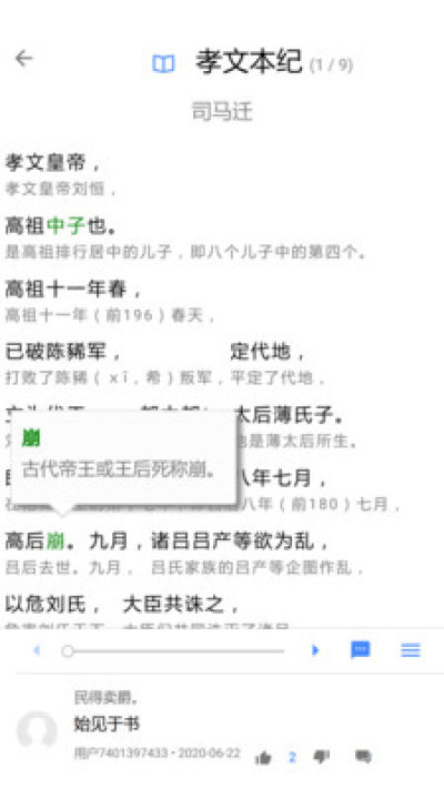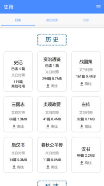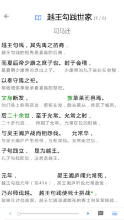 读典籍App是一款古文阅读器,旨在利用电子设备交互特性和人工智能算法变革古文阅读体验。无广告、免费供古籍爱好者使用。按句文白对照:独有的排版方式,方便看白话文翻译、也方便读者对翻译进行斟酌。