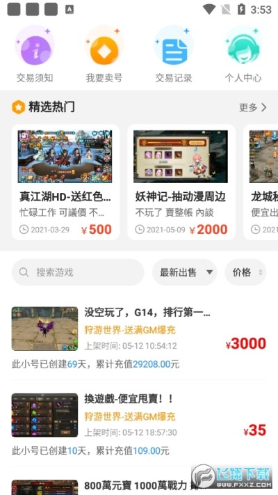 零元游戏app是一款用来线上交易的app,零元游戏app提供多种游戏的交易,还包括了gm特权,热门游戏的大神号,精品号,初始号这里全都要,快来下载试试吧!