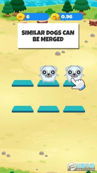 1、经典的合成玩法,只需要合并就能够解锁高级品种小狗崽;