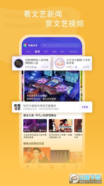 【推荐页】央视文艺是中央广播电视总台文艺节目中心官方唯一客户端,优质栏目视频直播、点播内容全覆盖,随心筛选随心看;广播实时直播、花式互动,打造传播新玩法,最新综艺娱乐动态,热点新闻、王牌栏目海量放送。