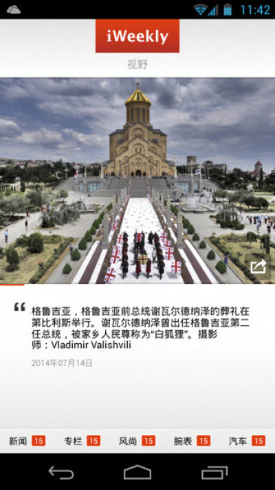 全新iWeekly for Android版进化空前,结合指尖出众互动,精致图文跃然欲出。每日奉上环球视野、独家故事、智趣观点和名家专栏,可掌中观世界,一指知天下。每日奉上环球视野、独家故事、智趣观点和名家专栏,可掌中观世界,一指知天下。