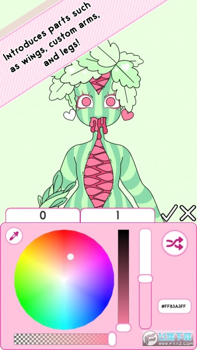 3、你可以对怪物女孩子的身体、脸、服装、首饰、发型等众多方面进行重塑。