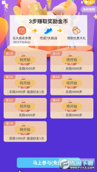 阳光走路app是一款最新的走路即可赚钱的软件,软件中有着海量的走路活动玩法等你参与,完成指定步数即可兑换金币甚至实物大奖,日常签到领金币,轻轻松松走路赚零花钱福利吧!对软件感兴趣的话不妨点击下载试试!
