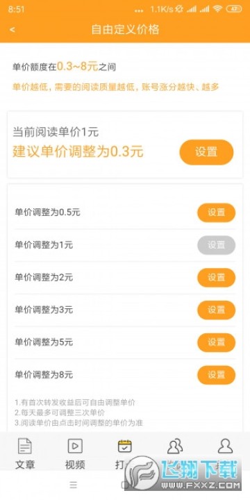 1、新用户下载注册指橙资讯app就送1元,转发文章单价默认1元/阅读(可自定义为0.3-8元)