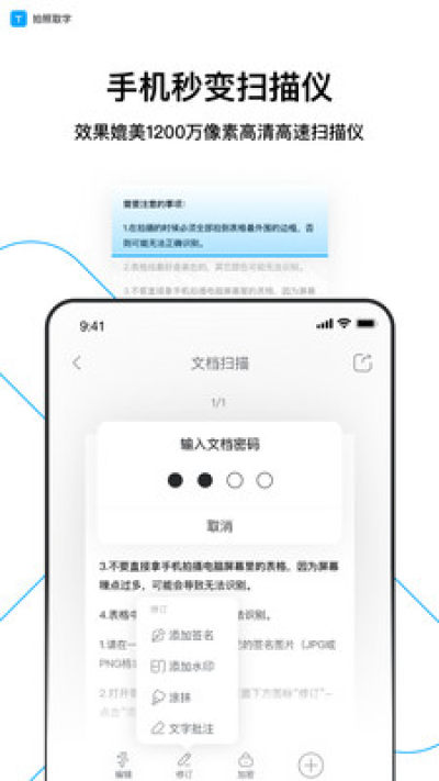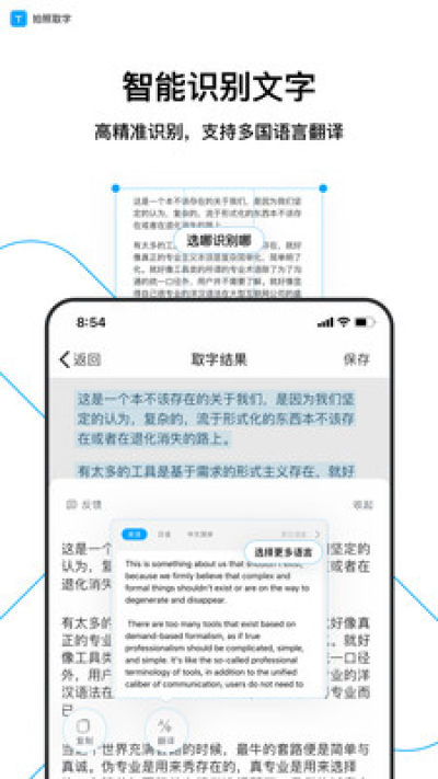 "拍照取字App"是不少海内外用户口碑选择的简单好用的文字扫描仪,文档管理工具。人性化的OCR识别功能,标准汉字识别准确度高。拍文字、拍文档,一扫一取,所见即所得。