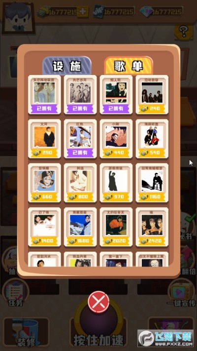 3、从简单的入门KTV开始白手起家,建立包厢,升级设施。从宣传拉客到**点歌。