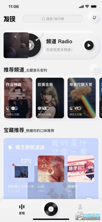 酷狗音乐概念版重点打造音乐频道功能,每一个频道即是一个音乐社区,可以订阅频道,找到志趣相投的一部分人,首页单列极简显示频道推荐,可根据你的 口味进行推荐。创建频道,分享你喜欢的音乐。频道内讨论区能够欣赏由他人分享的音乐,也可以自己推荐歌曲。