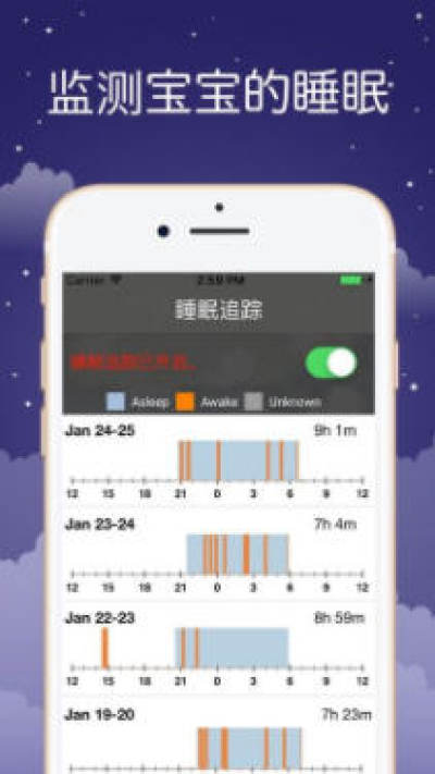 5、监测宝宝睡眠,直接在睡觉的时候监测宝宝的睡觉状况,知道他的睡眠情况。