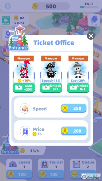 您能赚到足够的钱来解锁公园中的所有服务和设施吗?管理售票处并装饰公园以吸引更多顾客!提高机票价格并将您的钱投资到新设施上。控制业务的各个方面,并运营世界上最令人惊叹的巨型公园。
