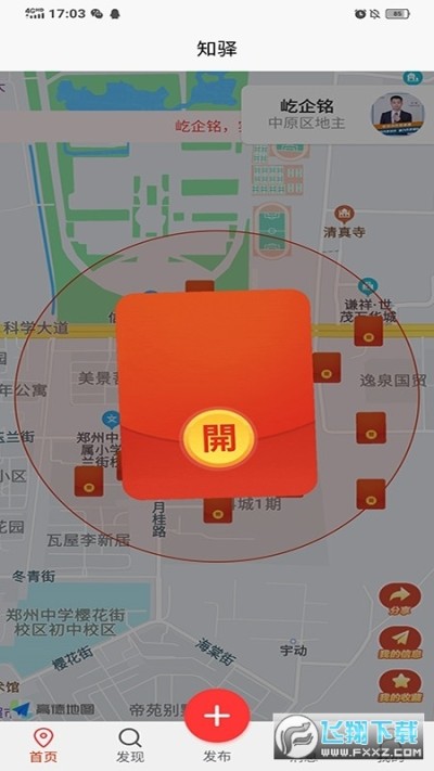 知驿app依据广告主发布广告时的设置,分成若干份红包。