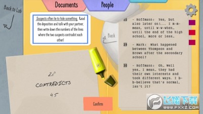 询问嫌疑犯你收集的所有证据。通读他们的证词,并与你的伴侣交谈,找出他们答案中的矛盾,使用独特的游戏方式。把两句话拼在一起,看他们如何摆脱它!