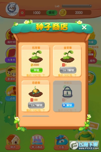 1、自动进行贩卖,将成熟的果子进行贩卖,轻松获取更多的金币,超多的果树可以解锁,培育出各种不同口味的水果,快速成为水果大亨;