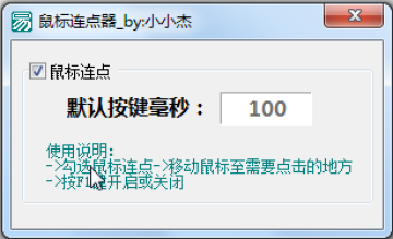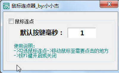 小小杰鼠标连点器是一款设计目的明确,简单易用,功能强大的鼠标连点工具,可以当作qq炫舞连点器使用,点击一次只需要0.001秒,点击1000次仅需要1秒。