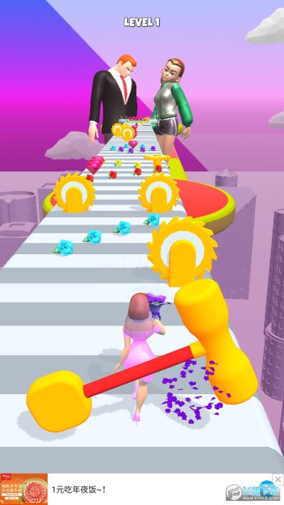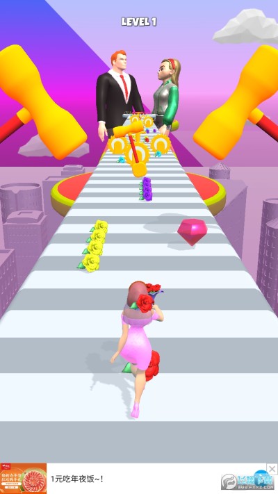 婚礼我最美安卓版是一块低模风格的休闲跑酷类手游,游戏里玩家需要在关卡道路上收集鲜花,躲避场景里的各种机关和陷阱,积累更大的鲜花束来打飞骗子丈夫,使用钻石来解锁更多的游戏内容,喜欢的小伙伴可以下载体验!
