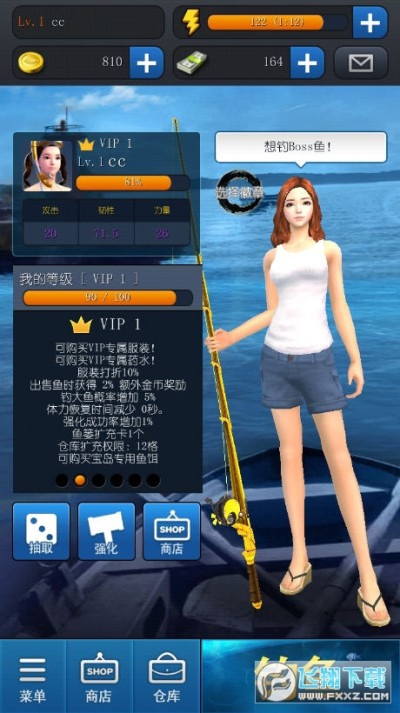 品质非常不错的国产3D钓鱼游戏,画面精美。可以锻造钓具,购买更多的服装来装备。游戏玩法紧张刺激,随着任务和剧情的发展可以开启越来越多的渔场。