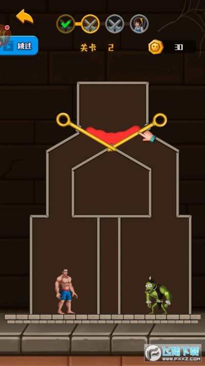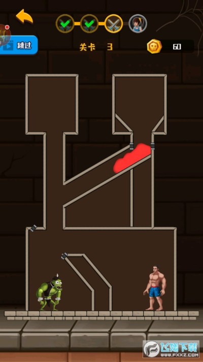 一款经典的密室闯关类游戏,运用你的智慧,帮助裤衩哥猎杀怪兽,成功闯关吧!关卡多多,奖励丰厚!不知名的原因,我方裤衩哥被困在一个小小空间,空间内还有怪兽时刻威胁他的安全,现在可以帮助到裤衩哥的人只有你:移动空间内的横杆,利用空间内的水源或者气体,帮助裤衩哥智斗小怪兽、救援小伙伴,每成功救援一次,都可以得到金币奖励呦!