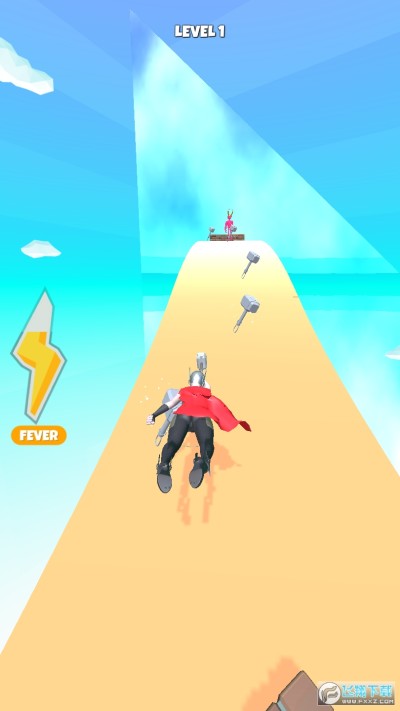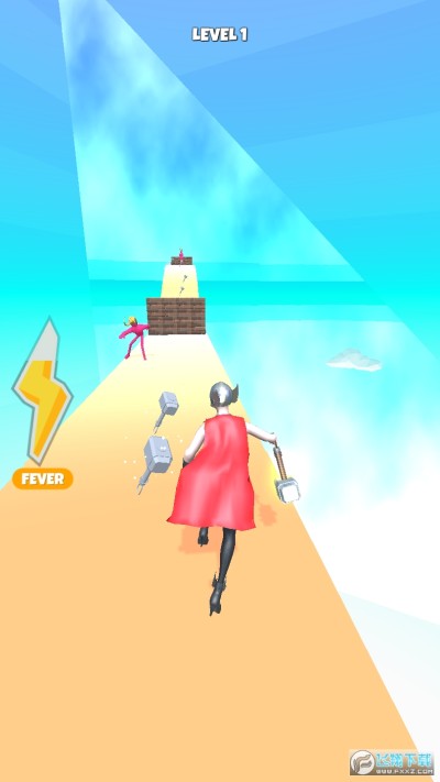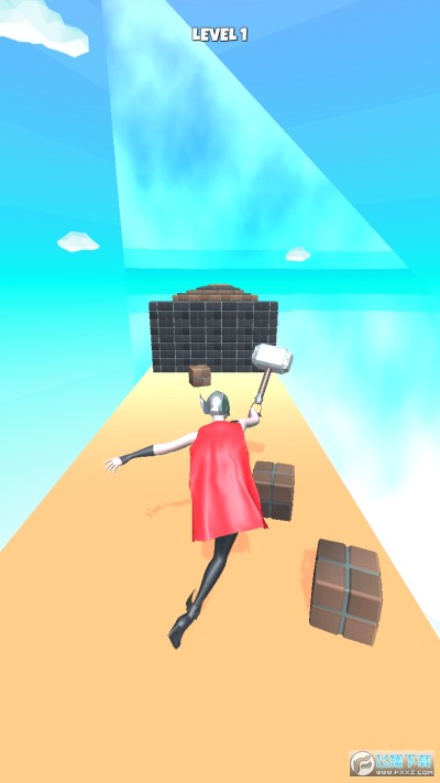 玩家操控游戏中一个手持锤子的角色在赛道上不断的奔跑,前方会有各种各样的障碍物会影响你的前行,因此你需要使用手中的锤子来将前方的障碍物一一锤碎,这个过程中会耗费你相应的体力,当体力不够的时候你就无法在前行了,因此在赛道上需要不断的收集锤子来增强自己的力量,让自己能够有力量坚持完成整个关卡的挑战!