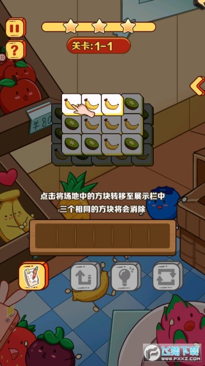 2.游戏内各种关卡的竞技效果都有着极大不同的冒险操作,灯泡可以敲除一对动物,撤销按钮可以撤销上一个选择的果蔬;